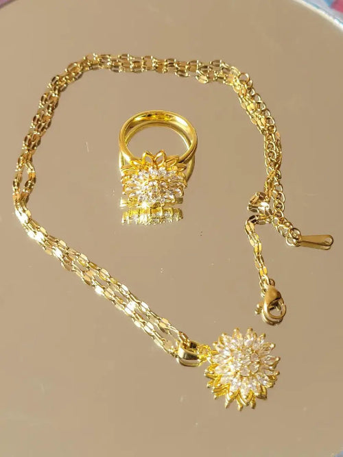 ¡Todas las mujeres aman los Girasoles, ahora imagina un Girasol Giratorio Bañado en Oro de 10K!✨